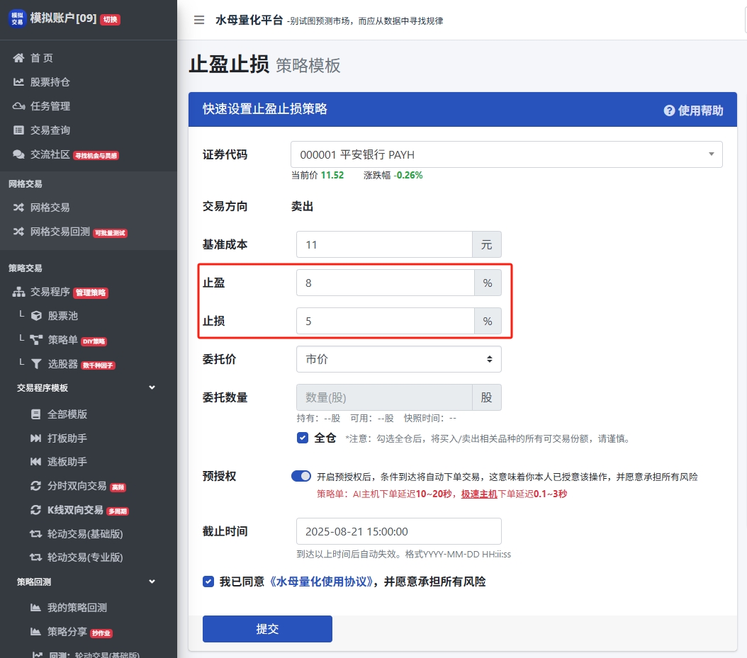 上漲8%止盈,下跌5%止損,應該怎么設置?