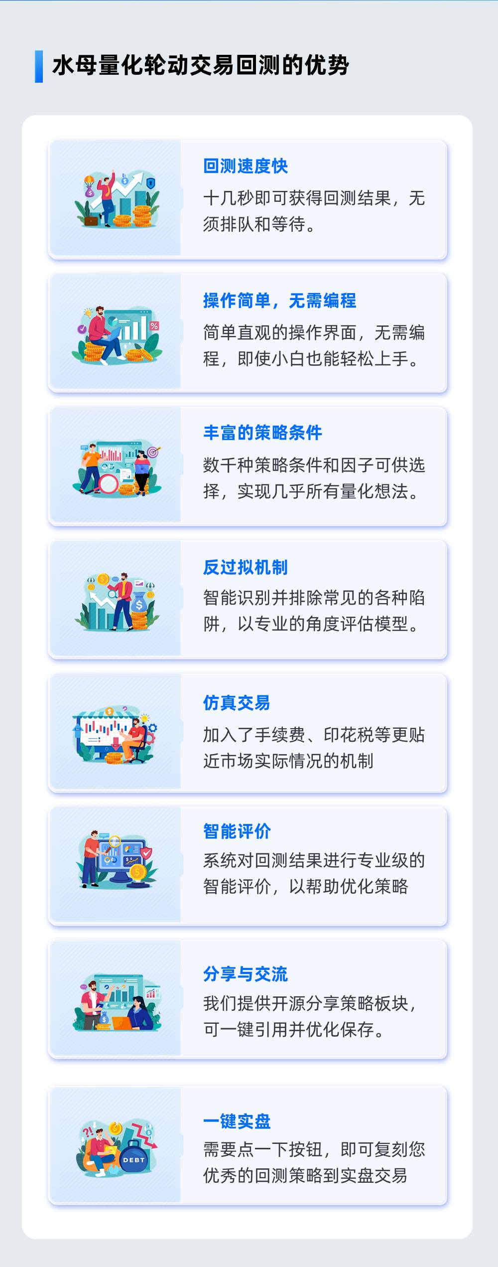 國(guó)內(nèi)首個(gè)無需編程的量化交易系統(tǒng),一步到位實(shí)現(xiàn)策略設(shè)計(jì)、高速監(jiān)控、實(shí)盤自動(dòng)交易,讓量化交易不再是程序員的專利,為廣大散戶提供了門檻最低的量化交易利器。